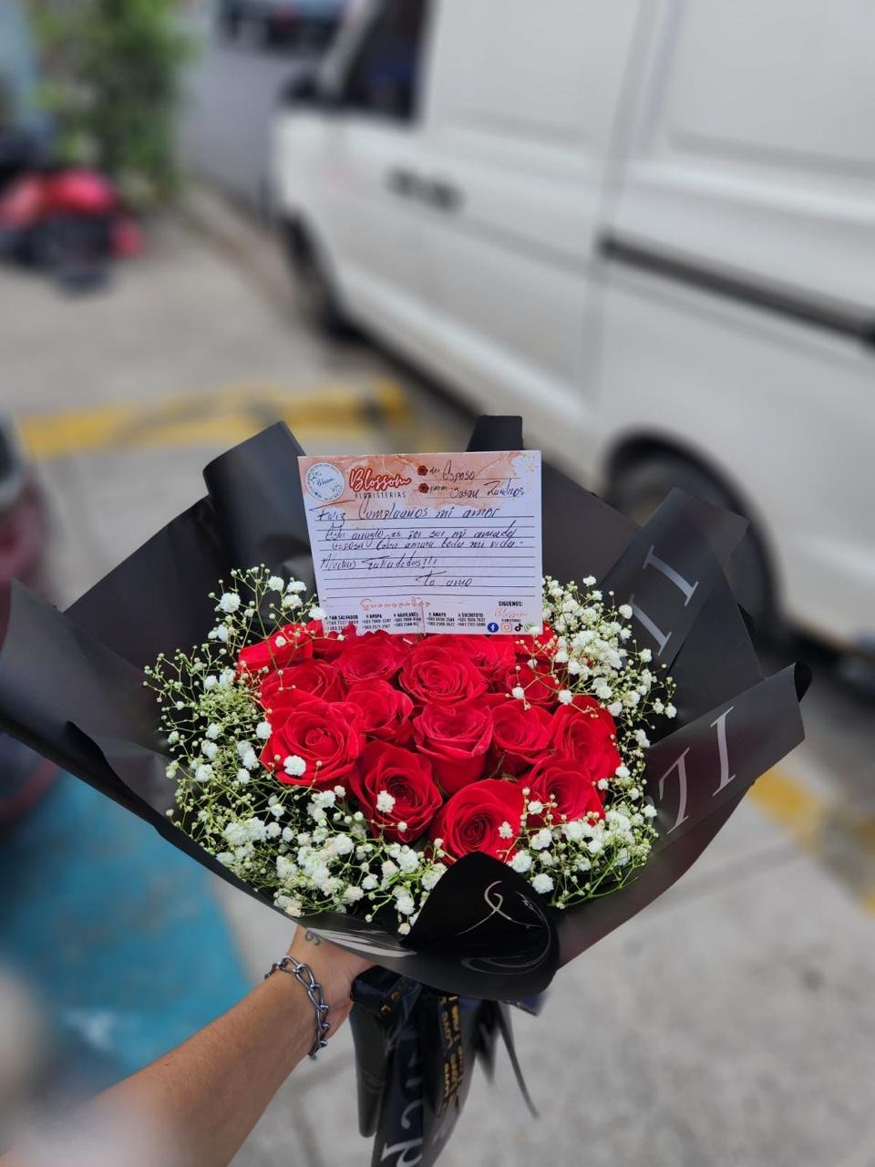 🌹 Ramo de Rosas rojas con Toques de Baby